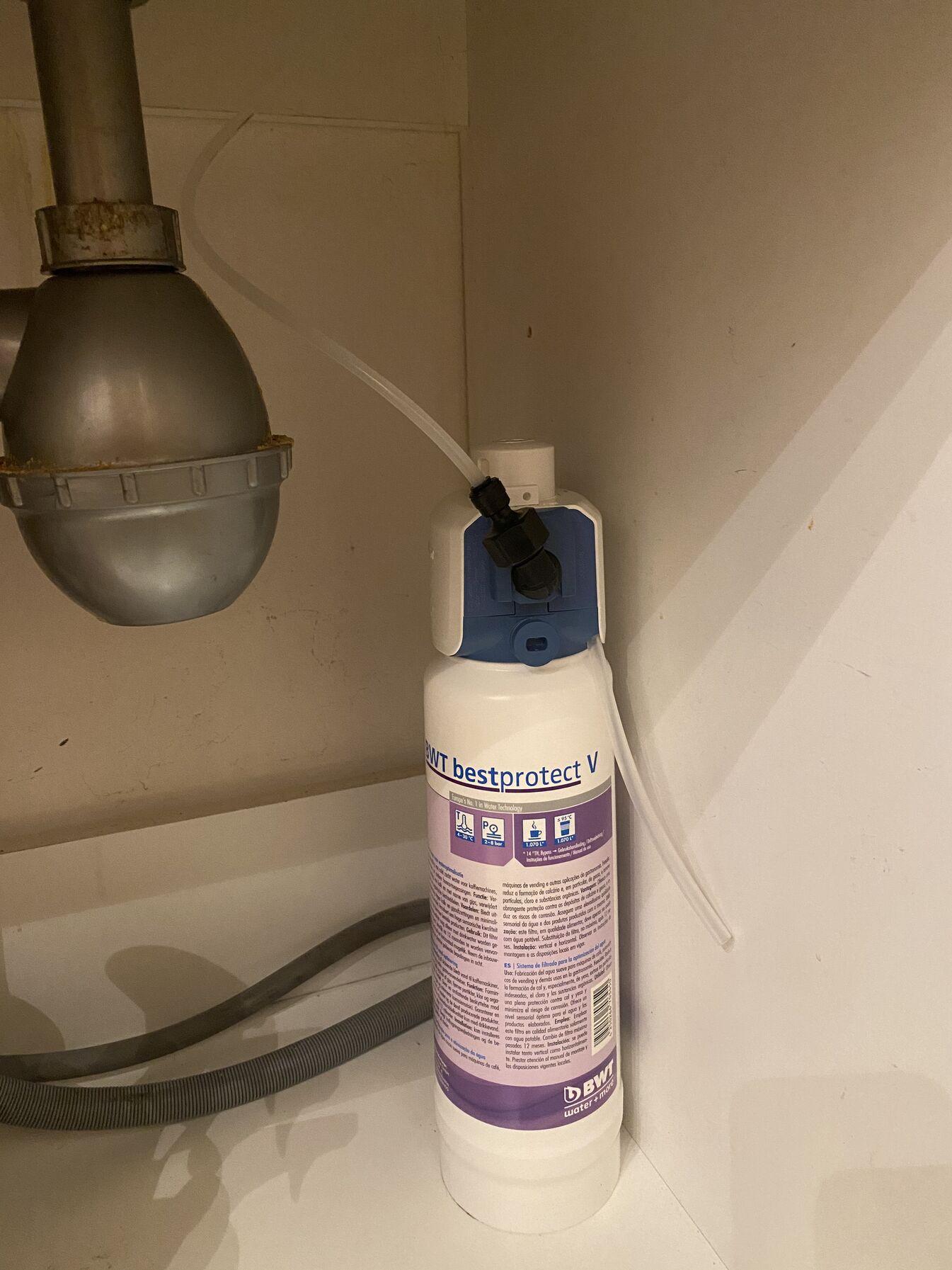 nem tudom, hogy van-e mosogatógépetek, nekünk van és a melegvízre van kötve (a háztartási villanybojler elé meg egy vízlágyítót kötöttem). szóval a konyhai hidegvíz nincs borzasztó sokat használva, így sima kétutas mosogatócsaptelep hideg ágára tettem az aktív szenet és kész.