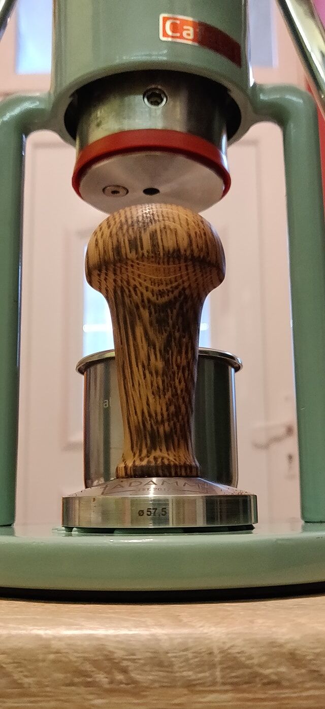 Legrosszabb esetben küldözgetjük oda-vissza egymásnak a talpat és majd lett volna belőle tamper előbb vagy utóbb. Nem túl jól definiált mérettel rendelkezik a Robot kosara, felül 57.9mm és lefelé szűkül. Van, aki azt állította, hogy az 57.5 esélytelen, hogy belemenjen, ezért is merült fel az 57.4-essel a próba. Mivel volt elérhető távolságban (15 perc) termék, amit bele lehetett illeszteni a kosárba szerintem ez volt a kézenfekvő. Lehet, hogy éppen a 0.05mm pontatlanság, ami ezekben benne van, nekem kedvezett és kifogtam egy 57.45-öst, ami tökéletesen passzol a kosaramba. Ha ez nem passzolt volna, akkor jöhetett volna a "matekozás", hogy vajon 57.35-öt vagy 57.4-et kérjek Ádámtól, hogy jó is legyen.