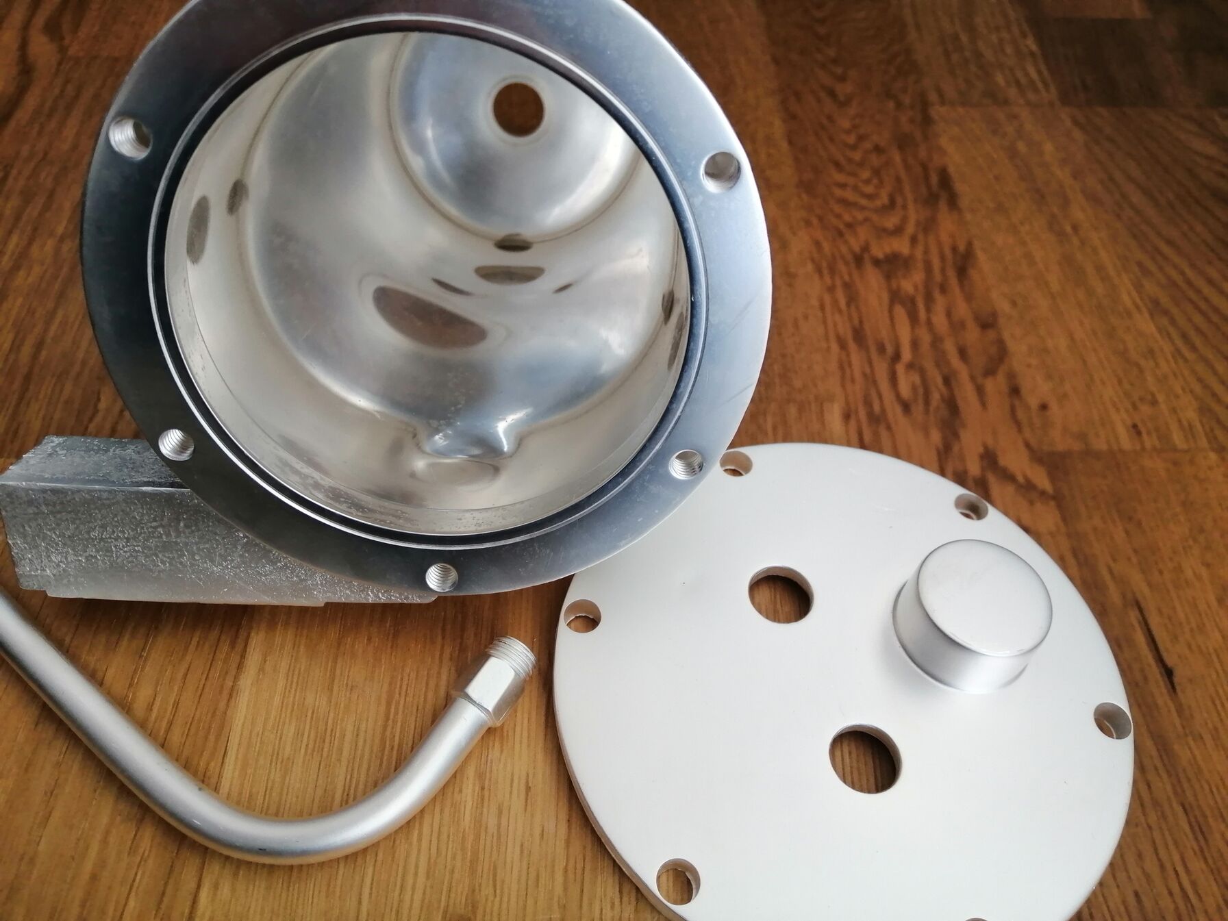 Amúgy a dobozbojler az 1db öntvény rézből vagy aluból, amit krómoztak? És ez egybe van öntve a fejegységgel amibe a szűrőtartó kart tudod beleforgatni? -