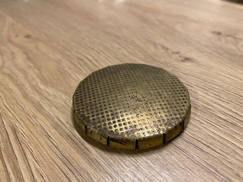 Amennyire látom csak a bevonat sérült ami szerintem PVD. Óratokon gyakran használják . De lehet tévedek és CVD technológia .Idővel ez elkerülhetetlenül megkopik.Magam is ilyen őrlőt használok és maximálisan meg vagyok elégedve nem csak a kivitelével, hanem a szemcse eloszlással is .