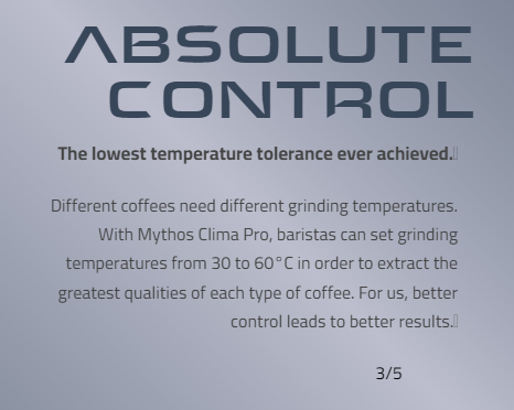 Én biztos megőrülnék ha 60 fokra felmelegített őrlemény jönne ki az őrlőből, de ezek szerint tudnak valamit amit mi nem. Mondjuk pl. azt, hogy az őrlemény alapesetben felmelegszik 60 fokra. Az pedig, hogy a Mythos-nál be lehet állítani valahogy - érdekes volna tudni - hogy akár 30 fok legyen, elég jó kis extra.