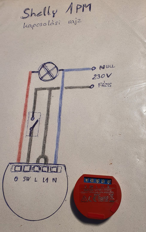 Most kössük be a Shelly-t a kapcsolási rajz szerint. [6.kép]