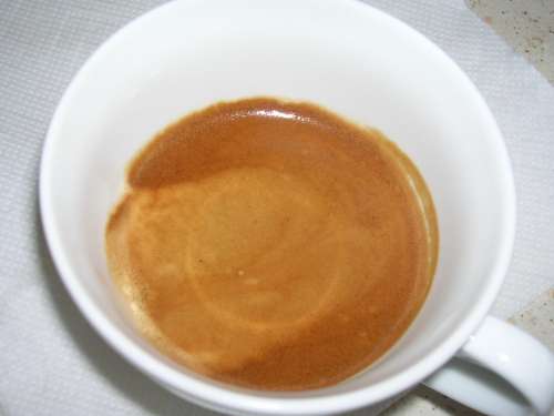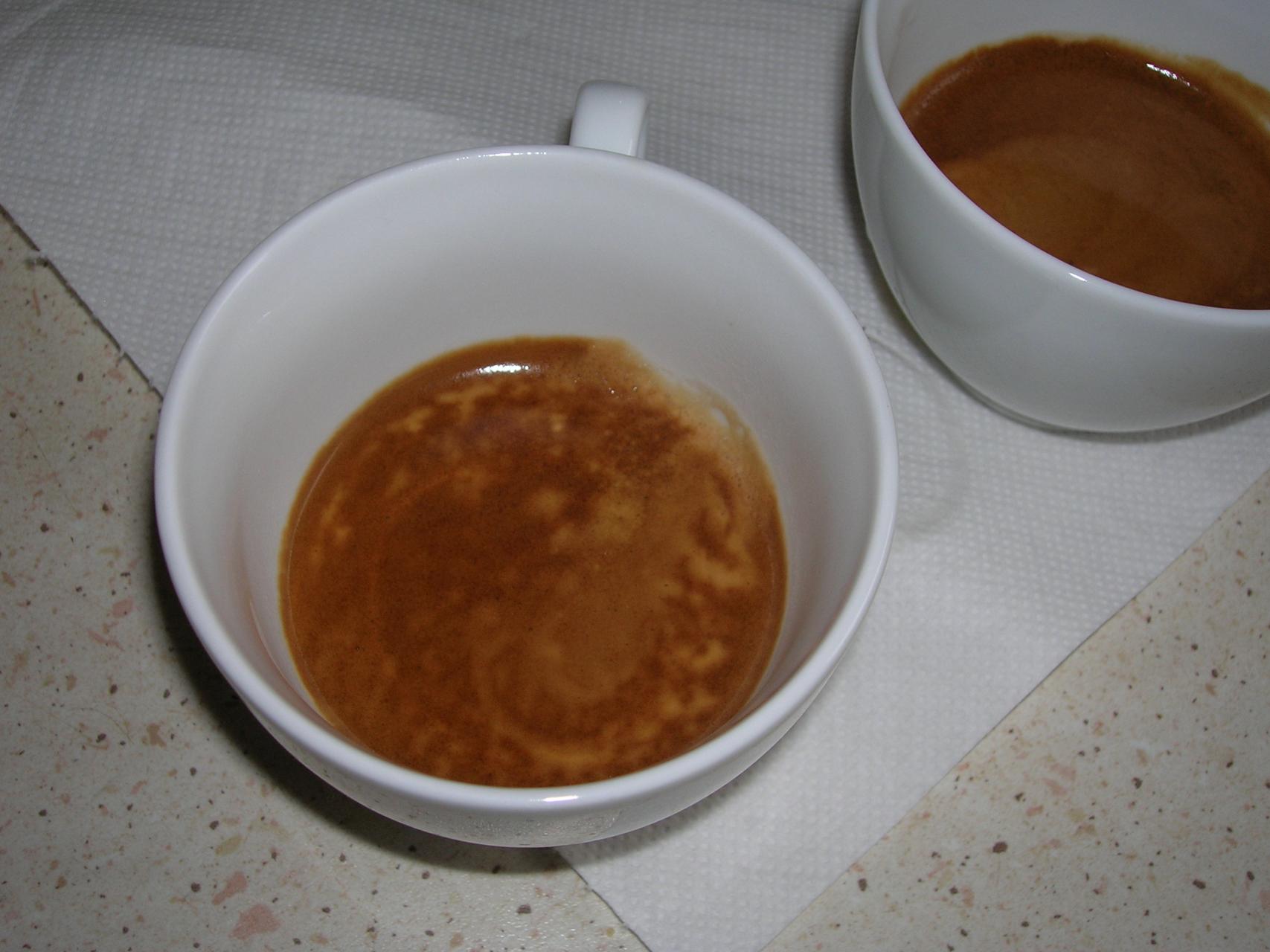 Döglött kávé beadagol,úgy ahogy van gépre föl és sugárban csapolás.Borzalmasabb volt látni majdnem mint meginni!