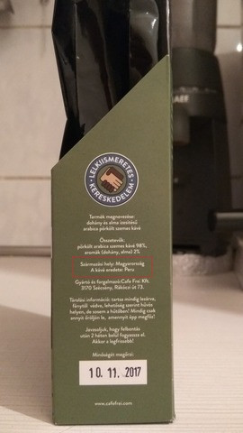 DE! hogy a „Nicaraguai Dohány-kávé” származási helye hogy lehet Magyarország, eredete pedig Peru azt végképp nem értem.Az még ok,hogy hazai pörkölés,de az eredete sem Nicaragua?