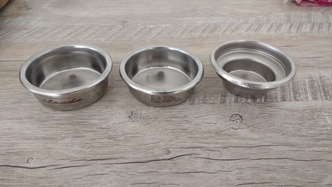 a duplaszűrőkből (bal oldali 2) a VST 2 fajtát csinál, az egyiken van a bemélyedés ami a karban tartja a szűrőt, a másikon nincs. a barázda alatt mind2nek teljesen egyenes a fala. (azaz 90 fokos szöget zár be az aljával)az LM szimplát lehet 58as tamperrel is használni, ez esetben tele kell tölteni. jobb eredmény érhető el egy szűrőmagasitóval, és 41es tamperrel.