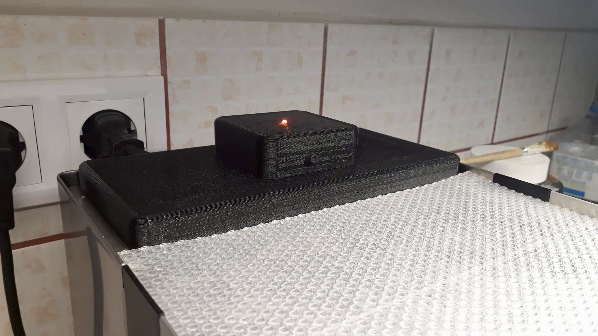 Mindeközben a hőelem a felsőszűrő alatt mér 2-3mm-el, de nem ér hozzás semmihez. Tehát valós hőmérsékletet és mindezt abban a zónában (az elfolyási lyuk felett) ahol a víz rendesen áramlik, hogy ne egy zsákutcában mérjem a kar hőellenállása miatti már kiegyenlített, melegen tartott vizet