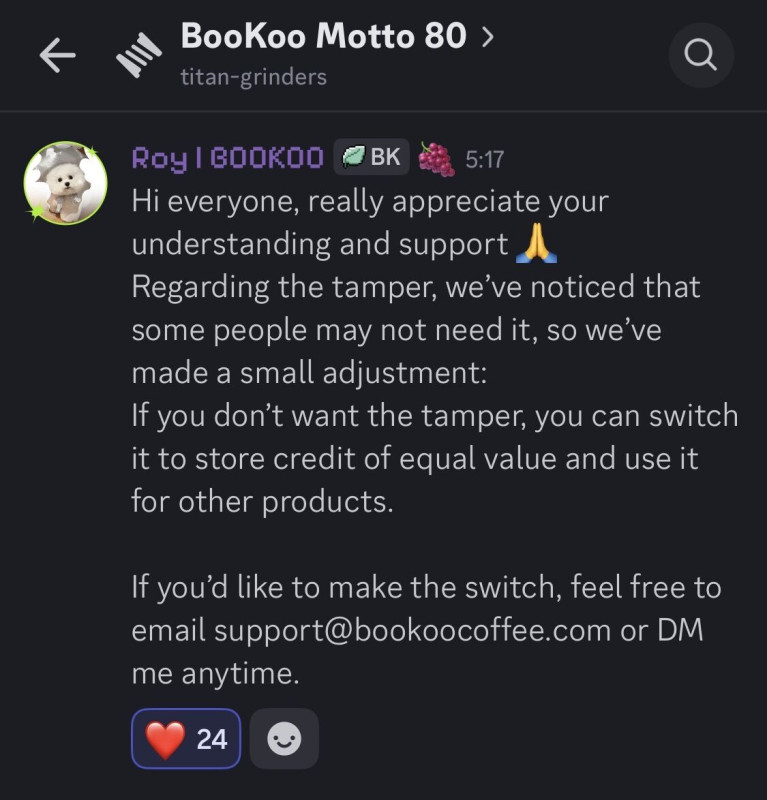 Néhány plusz infó discordról. Többen jeleztek vissza hogy nem kell a tamper, mert pl. nem is presszóznak, vagy hogy inkàbb mérlegre adtak volna kreditet, így van opció a tamper helyett azt kérni.