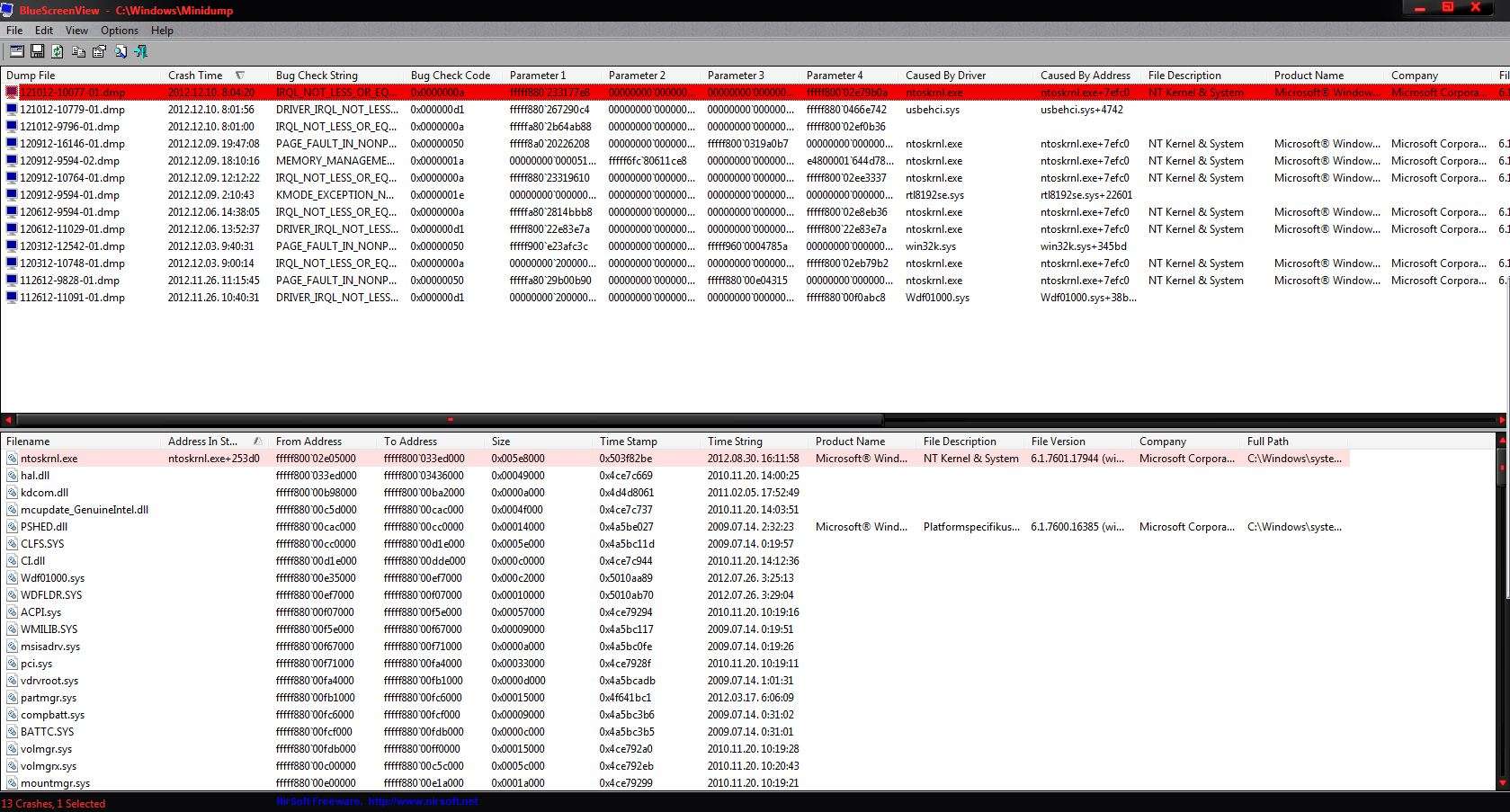 -Op. rendszer Windows 7 Ultimate 64xMaga a kekhalal akkor szokott bekovetkezni , ha hagyomanyos leallitas utan bekapcsolom a gepet , betolt a rendszer , megjelenik a talca es max 5 perc utan behal (altalaban enny sem kell). De volt mar ra pelda , hogy boot kozben halt be , de az elobbi jellemzo az esetek donto tobbsegeben . Miutan kekhalal utan ujrainditom masodjara mar soha sem fordul elo .Ha csak alvora teszem a gepet es ugy inditom be akkor nem szokott elofordulni "csak" rendes leallitas utani bekapcsolaskor , de akkor lenyegeben mindig egyszer behal . Nem tudom van e koze hozza , de bekapcsolas utan altalaban elkezdek bongeszni (Firefox) es akozben hal be , de szerintem fuggetlen ettol mert mar ugy is halt sokszor , hogy a talca volt elottem .