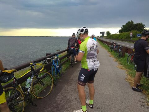 Viszont most értelmet nyert a tárcsafék az outimon, amíg a patkósok a szakadó esőben csak lassan tudtak megállni nekem megvolt ugyanaz a fékhatás mint szárazon. Találkozunk bringaúton 25%-os szakasszal (igaz csak kb 50 m volt), azért mikor a táblát megláttam fel is kézzültem lelkileg.