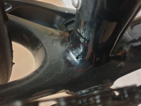 Mintha ráejtettek volna egy hátsó sort, vagy befeszítettek volna oda valamit szerelésnél feszegetni... ugyanakkor bár nem vagyok szakértő, ezért én nem aggódnék, nem néz ki vészesnek, semmi hatása nem lehet a váz tartósságára,merevségére.