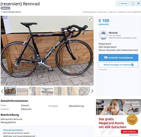 Az aprón teljesen össze-vissza vannak árazva a bringák. Az esetek 99%-ában persze felfelé (hulladékok többszáz eurókért), de néha van egy-egy kincs lefelé is. Tegnap láttam pl. ezt, (2 éves karbon gravel kiváló állapotban 700€-ért) de sajnos nekem pont kicsi, mire meg ide belinkeltem volna már reserved lett.