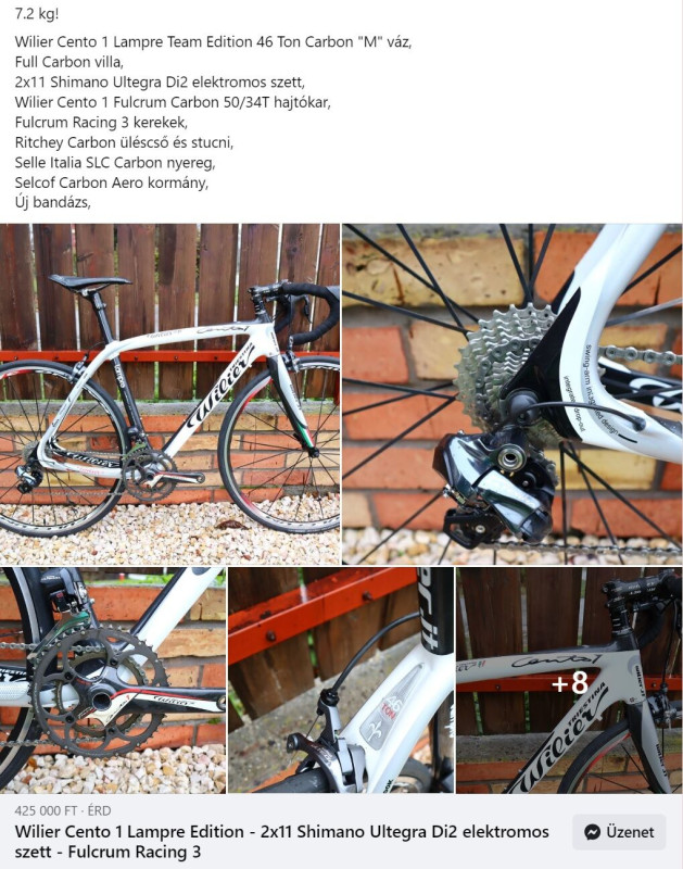 Itt ez a Willier is, ez Di2 -es, de a kerekek igazabol sima alu, atlagos garnitura. Meg csak jonak sem mondanam. De maga a bringa szep.