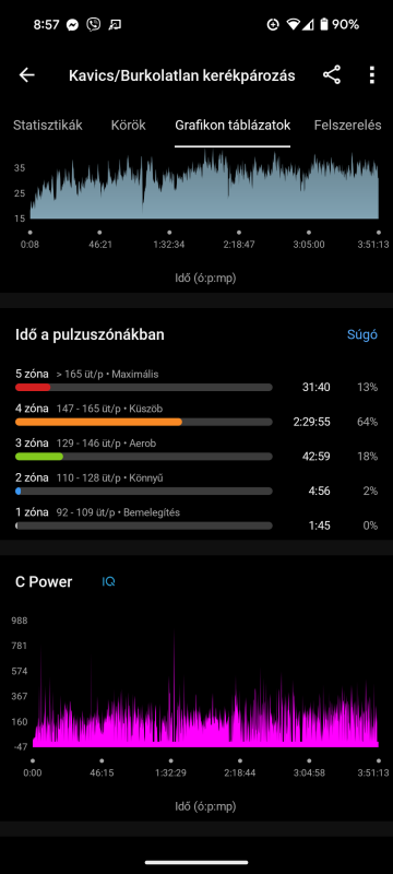 Másik, hogy lefelé sokszor nincs meg a z2, mert nyilván nem tekersz bele egy komoly lejtőn.Nekem 3+ órás távon kezd igazán szétcsúszni a dolog, eltolódik z3-ra a vége: