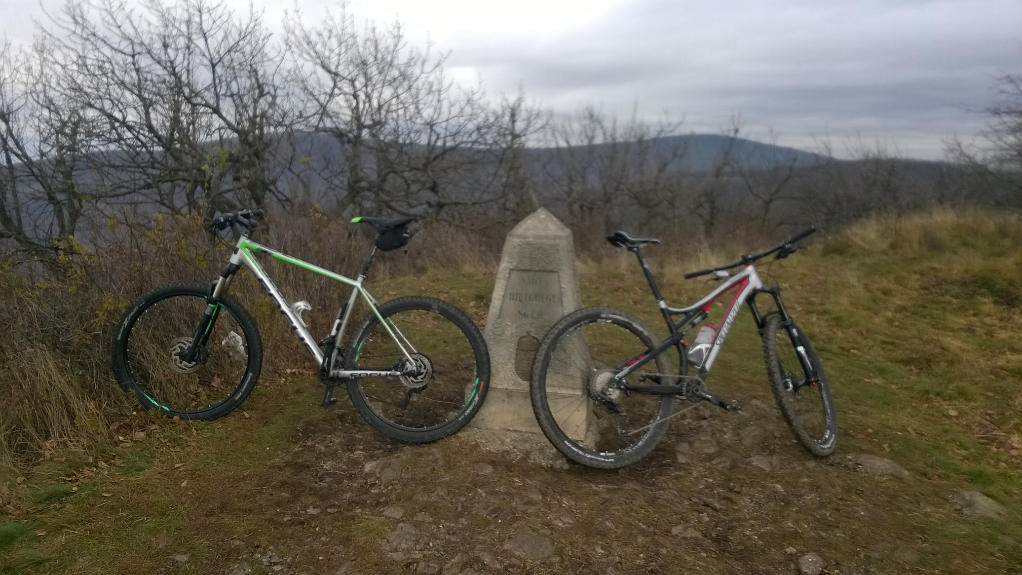 Az NHH és a Csóványos között le volt már fagyva a föld. Csak úgy csillogtak a fekete földben a jégkristályok. Talán ezért is jobban tekerhető volt, talán két gyökeres helyen kellett lépni párat. Elég zordak voltak a körülmények, de azt hiszem az utolsó jó napot sikerült kifognunk ebben az évben, pont eső előtt végeztünk.