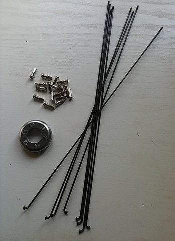 elkezdtek törni a küllőanyák, amikor próbáltam kicsit centírozni a kereket. aztán kiderült, hogy úgy rá van rohadva mindegyik(!) a küllőre, hogy esélytelen csak a küllőanyák cseréjével mogoldani a dolgot. úgyhogy el lett vágva az összes kűlllő, újrafűzés, most jön a centírozás.