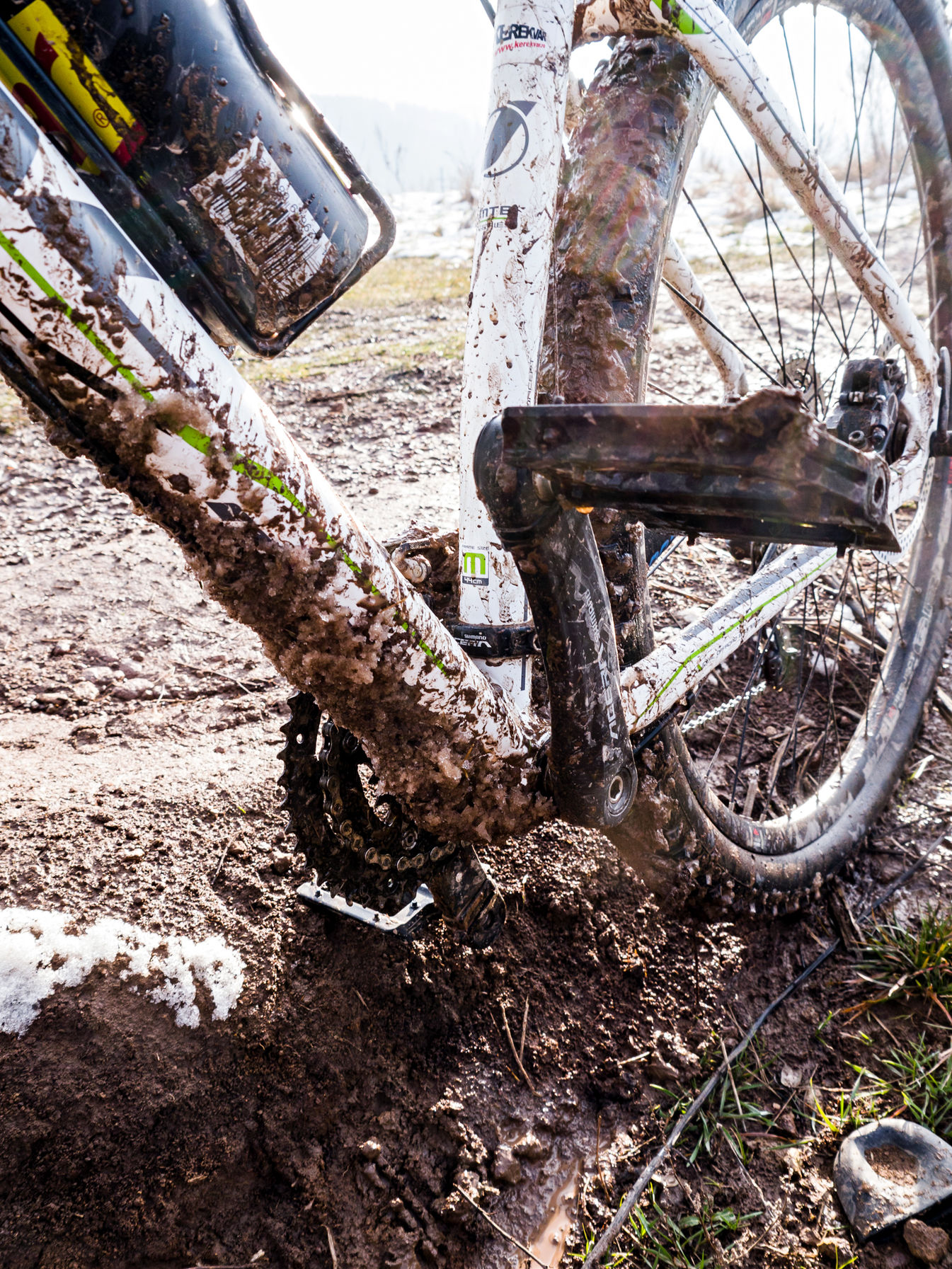 Országúton is nagyon rossz ez az idő. Ma is elmentem 2 órát tekerni, sárban nem is mentem, csak néhol nedves volt az út ahova nem sütött a nap. Tiszta sz*r lett az egész bringám, igazából folyamatosan az ebben az időben. A legnagyobb része a reteknek pedig a láncvillánál a középrész táján gyűlik össze, megy bele a középcsapágyba, megy fel a láncra, lánctányérra. Elől meg megy fel a kormánycsapágyba.
