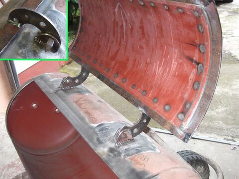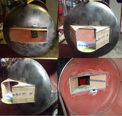 még gondoltam is magamban hogy elég vékony lágyacélból lehet a tartály palástja mert pikpak kifúrta. Én azt hittem hogy egy lejtős "vajút" szerkesztenek bele hasonlóan a reverse hőterelőlemezéhez csak ezt teljesen alulra teszik. Én majd a közepén kivágok egy téglalap formát egy elhúzható kis ajtóval, ott majd ki lehet engedni a "dzsuvát", én faszén használatra grillre is akarom használni a tartályt, így ott kap majd levegőt. Persze ehez készítek egy széntartó rácsot is.