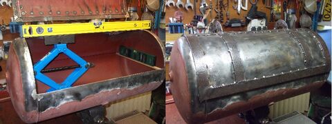 Azt hiszem érdemes lenne levágni a tartály végét, beletoldani 5 centit és egy síklemezzel befenekelni