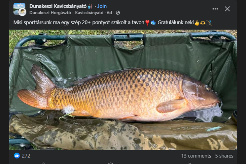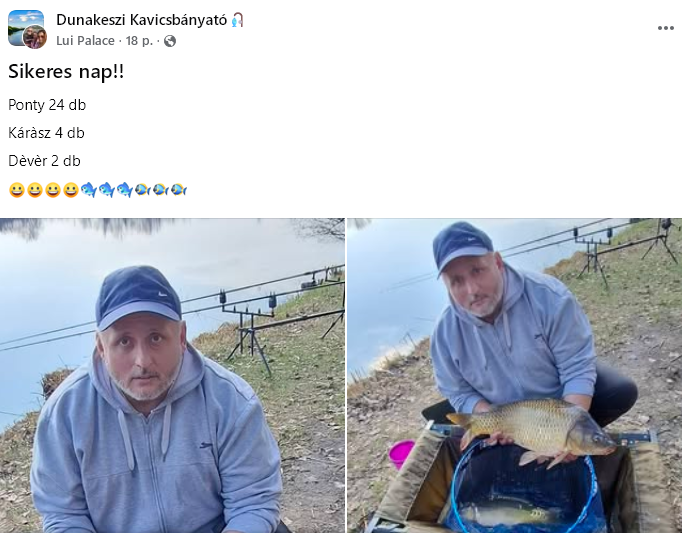 Szegény azért elég ijedtenek tűnik. Biztos ő is meglepődött, hogy a tó összes halát ki tudta fogni egy nap. Bár lehet, hogy a 24 pontyból 8-at kétszer is elkapott.
