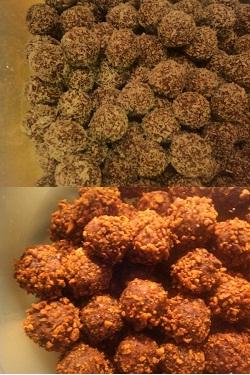A végeredmény 18 mm-es kókusz és gesztenyepürés/mogyorós golyó: