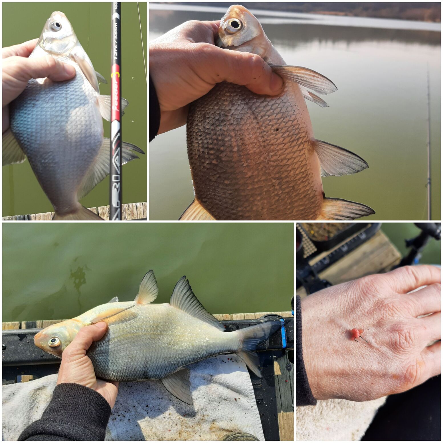Világos amit mondasz, direkt megfordítottam a csalikat, oda dobtam a "pontyos" szerkót ahol a pontyot fogtam, a keszeges szereléket meg ahol a nagy keszeg kapott rá (3 perc volt a két kapás között). Még két kapásom volt, mindkettő keszeg és a mangós pelletes (pontyos) kaját kapta el. Aminek örültem, az a pontyos kapás volt a 30-60gros, papíron 2oz spiccel szerelt 3.9m fine carp bottal. Jó kis 5 perces küzdelem volt és a Shimano 4000oc baitrunner is nagyon jól viselkedett. Pici hajtókar, finom fék. Kevés hal de vadvíz, keresős methodozás, jó idő, holnap meg majd bugyborékól a mini halászlé