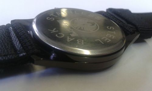 Maga az óra háza szerintem alumínium lehet, elég könnyű. A festés (vagy eloxálás?) jónak tűnik de ez majd idővel kiderül. A hátlap nem lecsavarható. Egy kiszögellés vagy akármi sincs rajta ahova bele lehetne kapaszkodni a lepattintáshoz. Ezt azért látom aggályosnak, mert a hátlap alatt látszik a gumitömítés, tehát ha oda valamivel benyúl majd az órás elemcsere miatt, akkor a gumitömítésnek annyi. Remélem azért látszik valamennyire a képen.