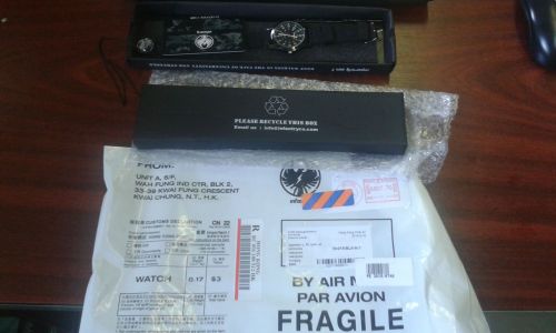 Infantry Military bőrszíjas az óra gyönyörű csomagolásban érkezett kibontva is szép. Első beállításnál a korona a kezembe maradt. A karomon hagytam épphogy a csempéhez ért rögtön éktelen mély nagy karcolás keresztbe az üvegen.. És ez csak az első félórában történt. A karc miatt sajnos a refund-ról lemondhattam.