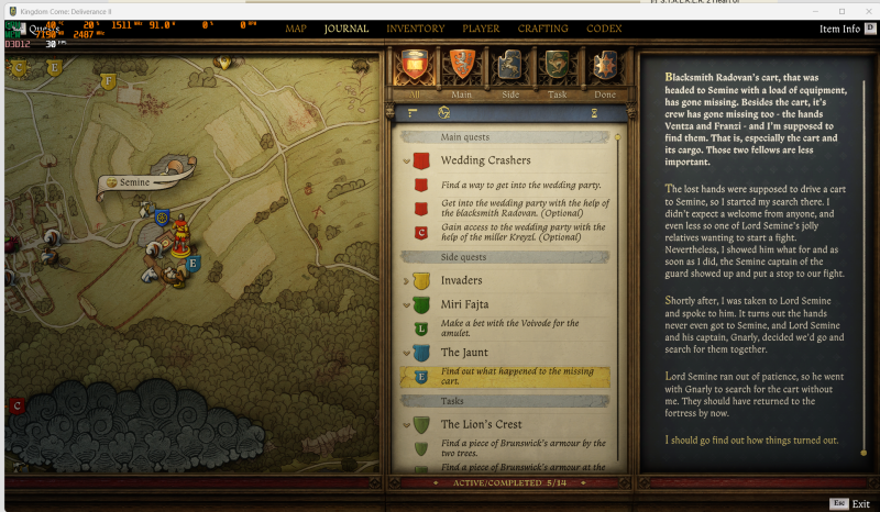 Seminen Gules adott remek side questeket, ebből 2-t meg is csináltam. Elvileg volt még kettő.A main quest oda vitt, hogy felégettük Seminet. Gules eltűnt.