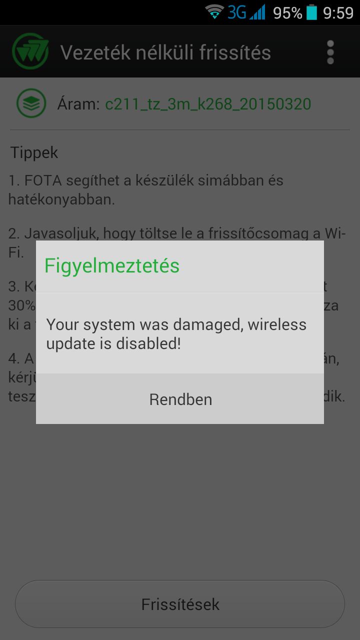 Egy olyan problémám lenne mivel ő rootolta a készüléket nem engedi felrakni az OTA frissítést, Ezt a hibát írja.