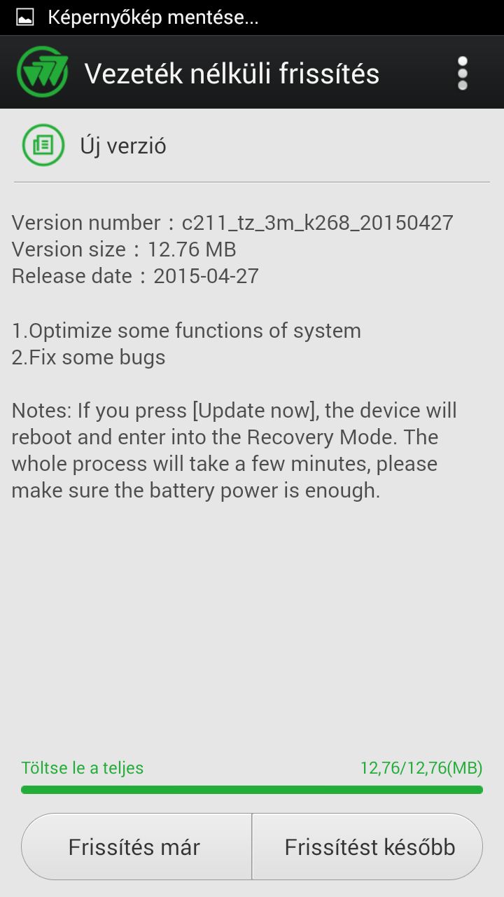 Van új (0505) frissités, de nekem a feltelepités OTA (hehehe...) egy idő után (0,5-1 óra) nem éled fel a képernyőzárból, háttérvilágitást bekapcsolja ill a kapacitiv gombok is világitanak, de hang van kép nincs, ahogy a régi magyar mondja.