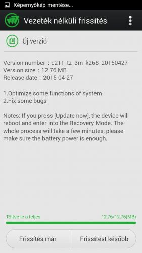 Mai napra megjelent egy frissítés.