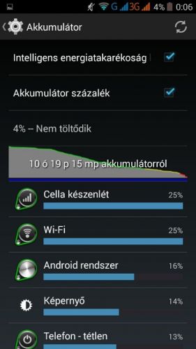 Vagyis ott tartok, hogy egy napot elketyeg, kb 3 óra kijelzőidővel és egyetlen hard-demanding alkalmazás bekapcsolása nélkül. Csodálom, de örüljünk, hogy neked a két nap is megvan.