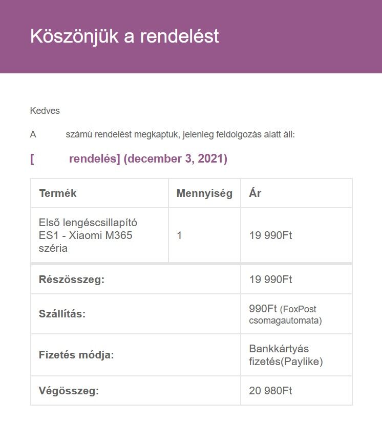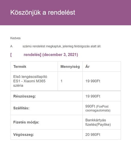 Igen, de első körben a sima Xiaomi lengéscsillapítót rendeltem előreutalással még dec 3.-án. Aztán a héten írtam is nekik meg telefonáltam hogy valami nem stimmel a rendelésemmel. A srác telefonba korreknek tűnt, rá is beszélt a Monorimes változatra, meg is beszéltük hogy küldje el a módosított számlát és én elutalom a különbözetet. Azóta küldi úgy, hogy kinyomta a telefont is, aztán visszahívott hogy ő arra várt hogy én küldök neki emailt amire majd válaszol. Na ezt már nem nagyon értettem, de mondom már kettő emailt is küldtem. Szóval most ott tartunk hogy még mindig várom az emailt. Hétfőig még várok aztán fogyasztóvédelem.