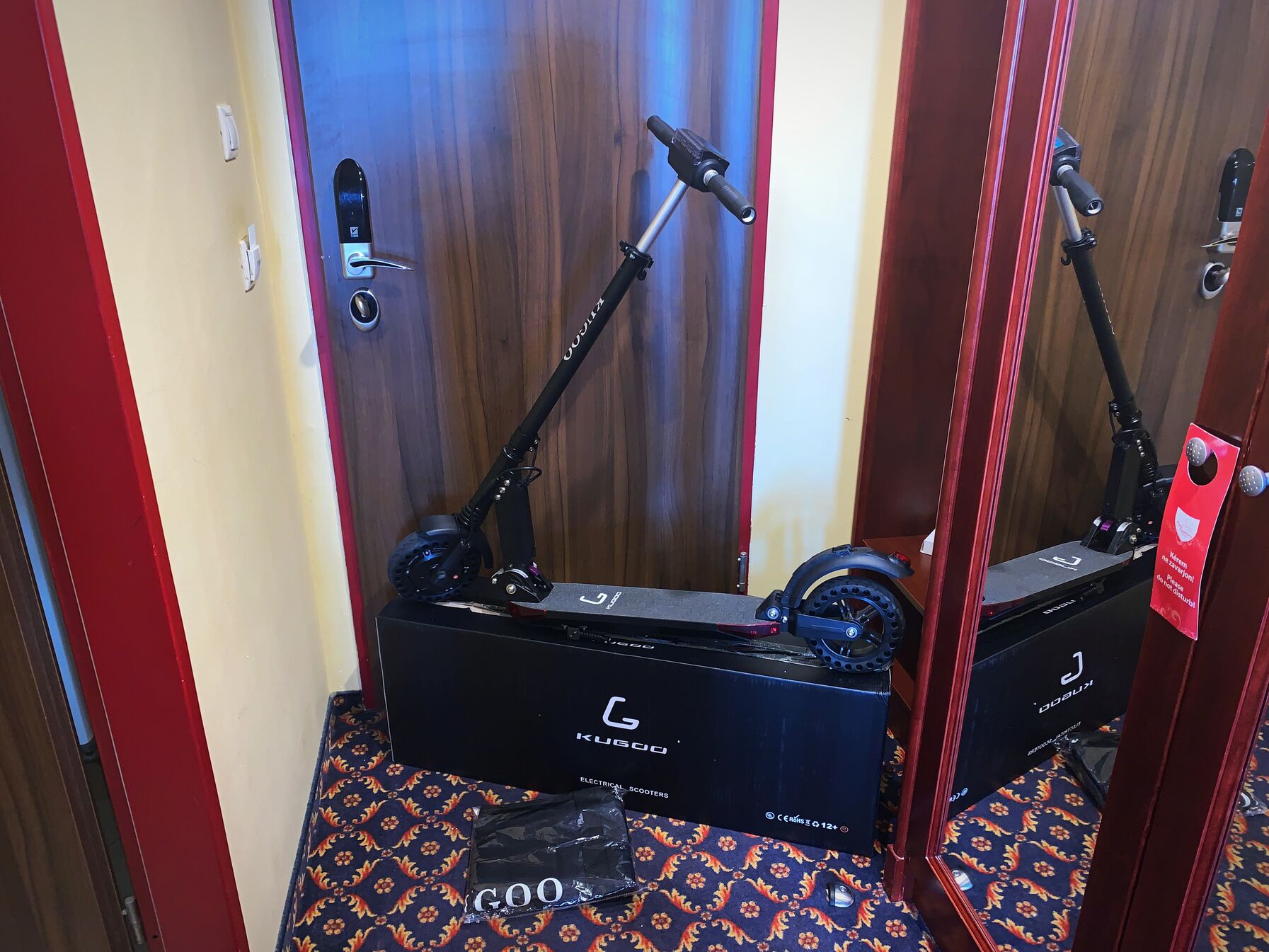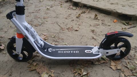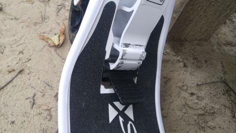 Első nap beragadt a fék, nem engedett vissza, én semmit nem tudtam csinálni vele, de a szerelő megoldotta egy ezresért. Menet közben valami állandóan csörömpöl az első keréknél, még nem jöttem rá, hogy mi. A rúgózás nem olyan könnyű, mint az oxelonál, sokkal keményebbek a rúgók. Az összecsukása viszont egyszerűbb, mint az oxelo lábbal való csukása. Viszont a pedál az álló részen van, tehát figyelni kel, nehogy rálépjünk menet közben. Abban sem vagyok biztos, hogy ez a megoldás van olyan tartós, mint az oxelóé. Az álló részen a tapadós rész kezd feljönni, de a többi ragasztott dolog is, amin a roller neve van. A roller egyébként megy mindenen, mint kés a vajon. A viacoloron és macskakövön azért ráz, túl kemény a rúgó. A fék javítás után nagyon fog, óvatosan kell fékezni vele. A menettulajdonsága jó, végülis ez a lényeg.