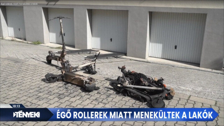 5 elektromos rollert említenek, abból 4 felismerhető és még látni lábbal hajtós rollereket a z összeégett kupacban.