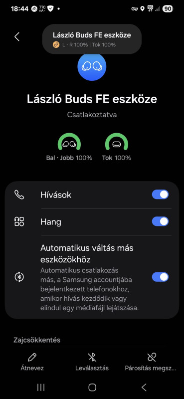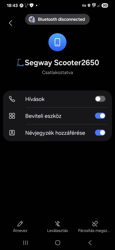 Segway-Ninebot F3 E Rollert használok Samsung Galaxy A54-es telefonnal és Samsung Galaxy Buds FE fülhallgatóval. Az a gondom, hogyha hívnak, akkor az A54 a hívást ilyenkor nem a Buds FE-re, hanem a rollerre irányítja. Hogyan lehet megoldani, hogy a rollerre ne irányítsa, hanem a Buds FE-re adja ki a hangot, miközben így van beállítva: