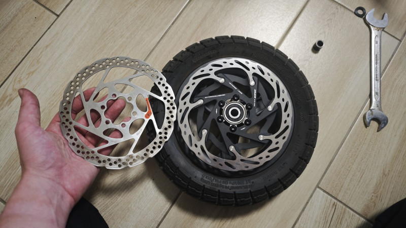 Szerintem hatalmas hiba azért lecserélni a gyári féktárcsát (s csak azt, ráadásul egy nem oda való, úszó tárcsára, azt is forgásiránnyal ellentétesen), mert idézem: "pofásan néz ki"