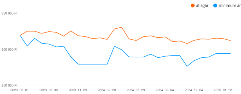 320.000 Ft-ról indult másfél éve, 277k volt a legalacsonyabb ár, most is 300k környékén van.