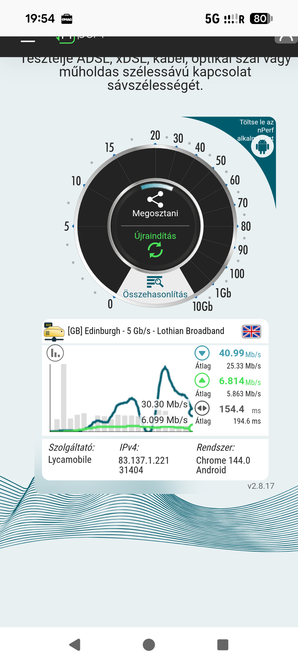 Akkor annyit módosítok, hogy angliai szerverrel is meg lehet nézni a sebesség tesztet.