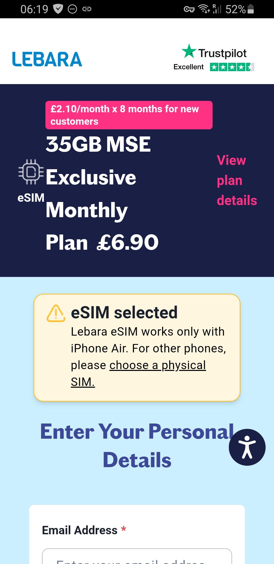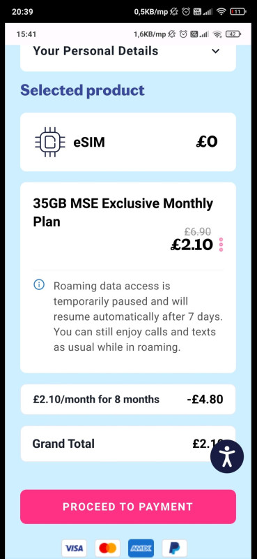 Lebara esim itthonról aktiválva, 35GB keret roaming esetén 30GB, ha jól értem egy hét múlva lesz roaming adat csak, ha valakinek van tapasztalata szívesen olvasnám.