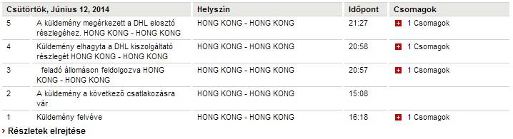 Május 22-én adták fel Szingapúrban, 24-én el is repült, 29-én megérkezett Ferihegyre. Innentől a szokásos tempót futotta, 4-én vámolni kezdték (aznap papírokat el is küldtem), 6-án vámhatározat elkészült, és 12-én hozta a postás. Nekem nem volt sürgős, így belefért.