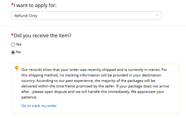 2. If you have not received your items, or you are not satisfied with your items, you can click ’Open Dispute.’ before Purchase Protection deadline or Purchase will be automatically finalized.