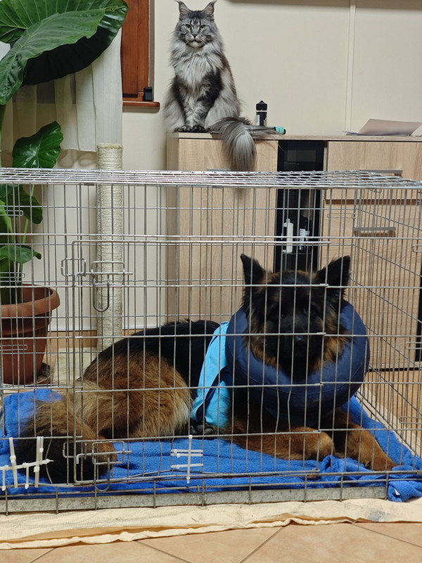 Ha leveszem a gallért akkor már most is megbolondul, rohangál és játszani akar, de még 1 hétig jó lenne pihentetni. Könyök műtét után pár nappal is már ugrált/futott. -