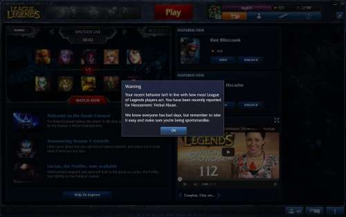 Hugi00: Azért, mert amúgy az lenne az értelme, hogy ha pl általában nem vagy toxic, de mondjuk rossz napod van, akkor figyelmeztet a rendszer, hogy reportoltak, és vegyél vissza. Csak akkor is feldobja, amikor a vérpistikék reportolnak, de amúgy van értelme szerintem. Mondjuk annyit tweakelhetnének rajta, hogy ha nagyon keveset, vagy egyáltalán nem írsz a chatbe, akkor ne dobja fel.