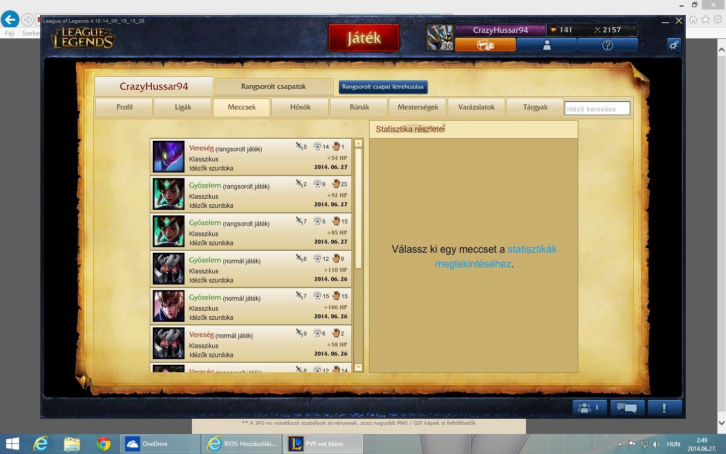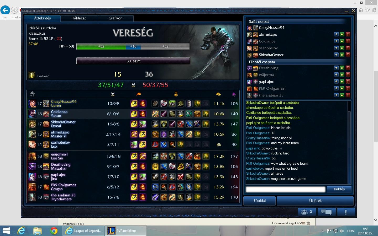 Ezt nem hiszem el... volt két nyertes menetem egymás után, utána egy vesztes rangsorolt meneten ÉS 0 LP-m van jelenleg?!!