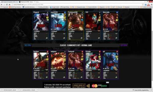 Megvolt az 500 game es elmentem rankedre: bronz5 -> silver 1 kb.70-90 jatekbol mgvolt.Persze konnyu volt mert az adott champot tudtam vinni: top, mid, jungle es sup-nak.