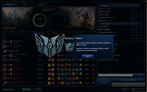 Ecsém, de béna vagyok Gnar-al... Eddig az összes meccset vele elvesztettem. Nem az hogy sokat haltam vele, hanem hogy egyszerűen nem tudtam ölni vele semmit, vagy csak nagyon ritkán. Nálam bekerült a nehéz karakterek közé, mint amilyen leblance is. -