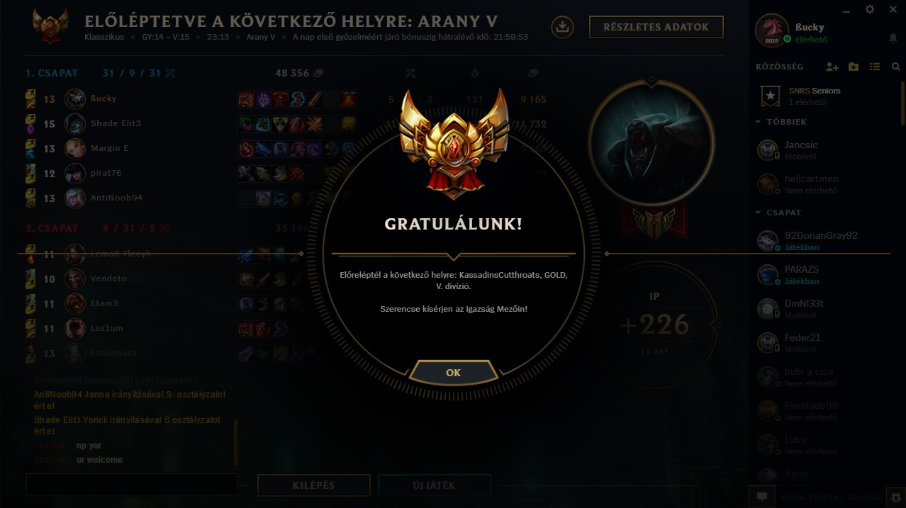 És témához kapcsolódóan leírnám, hogy amit látok, az alapján sokan vannak, akik személyes véleményük szerint goldba, vagy platinába kéne legyenek, de a sok "noob", miatt nem jutnak ki silverből. És való igaz, hogy ezek egy részének egyéni teljesítménye tényleg jobb (jó kda, jó farm stb.), de nem csapatjátékosok, illetve toxic, flamer az illető (tisztelet a kivételnek, de nekik tényleg csak többet kell játszani és feljutnak). Igaz nem ez a szint, hanem platina és diamond játékosoknál látom néha, ha streamen belefutok, hogy bár ügyesek, de rendkívül toxic-ok gyakran (nevet nem írok inkább).
