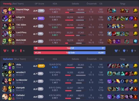 Irelia 3-10-5, Darius 6-7-2, Ahri 2-9-7!, Pantheon 6-11-3!, Aphelios 3-4-5, KDA-kkal zártál, amik nem túl fényesek. Persze egy bestompolt FF15 meccsen ahol veszítesz, ott ez úgymond a meccsel jár, olyankor lehet többet halni, de egy megnyert meccsen, ahol nálatok volt egy vagy több carry player, tehát ahhoz képest lefelé húzó teljesítményt mutat számomra.Persze mindenki máshogy játszik, valószínű ezzel együtt is azért nyertek, mert hasznos tudsz maradni, de magamból kiindulva, nekem ha 3-4 halálnál többem van és 3.0 alatti KDA-m akkor általában az azért van mert atommódon kikaptunk csapatszinten, kb minden lanen. Megfordítva, ha erős a csapatom, tehát vákumban az opponentemet kivéve a csapat többi tagja 4v4-ben jobb mint az ellenfél, akkor én is nagyon jó statokkal szoktam zárni, hiszen könnyű a meccs, nálad ez nem mindig van így még akkor se ha ti sokkal erősebbek vagyok és nálatok van a carry játékos.