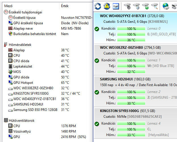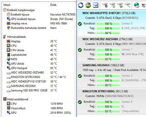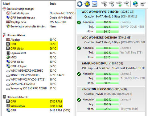 Mindkét m.2-ben van SSD, szerencsére, mostani felállással 50 fok fölé nem emelkedik.